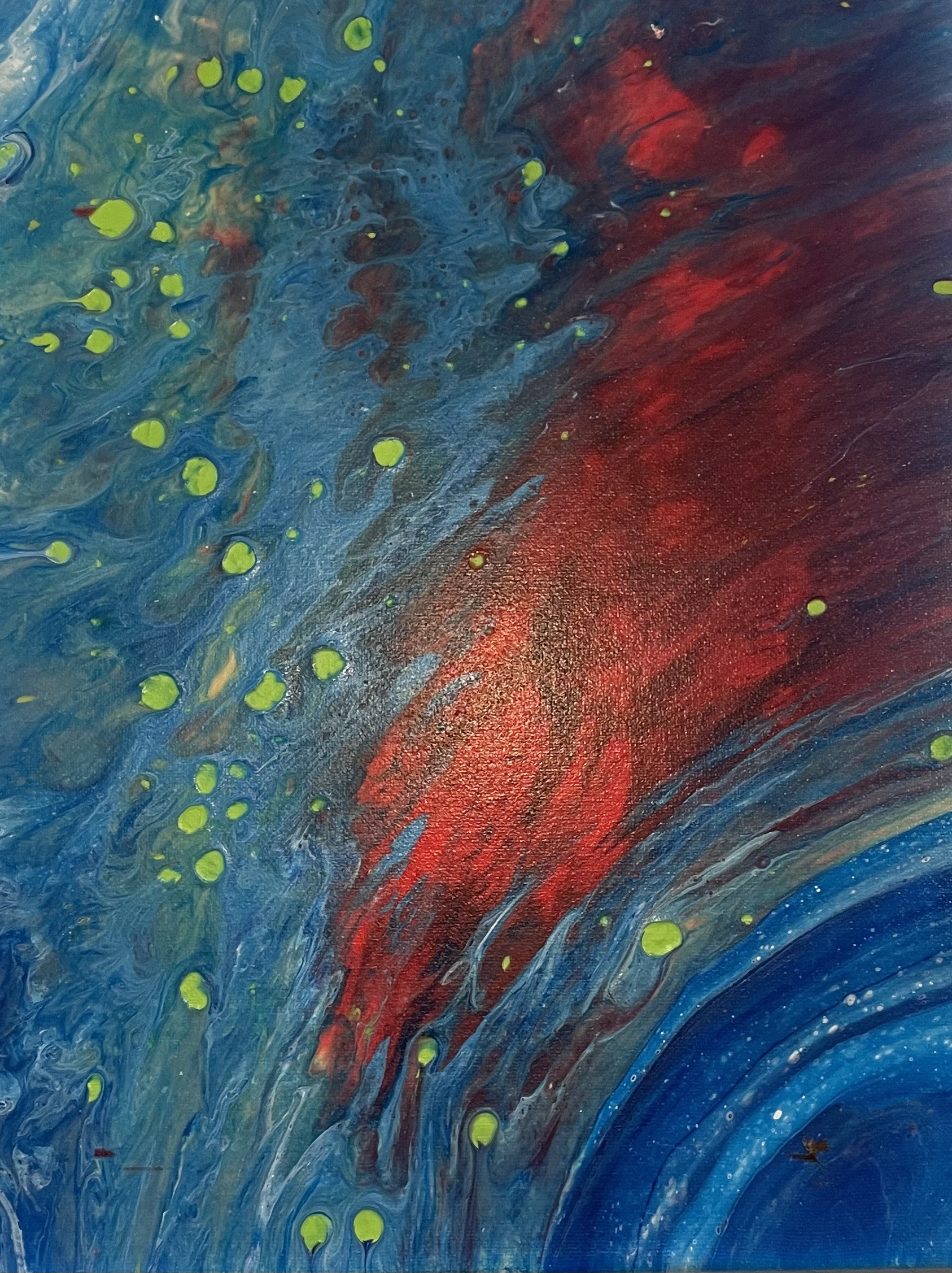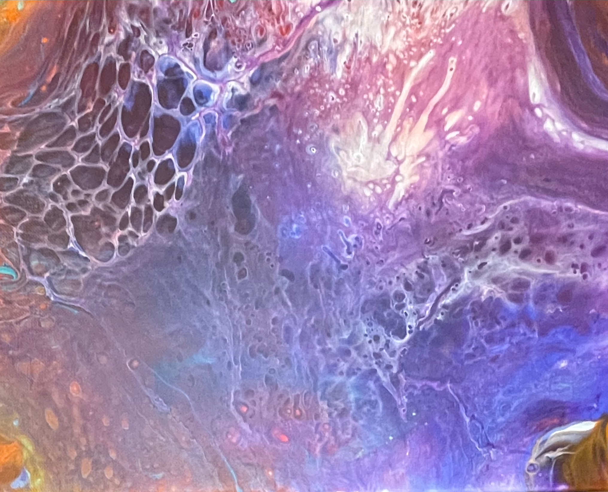 This piece reminds me of pieces of an extraterrestrial object in outer space that you would find on a journey to the depths of our galaxy. The artwork is a one of a kind piece that was created in my home art studio. This painting is 8 inches by 10 inches on a wrap around canvas.