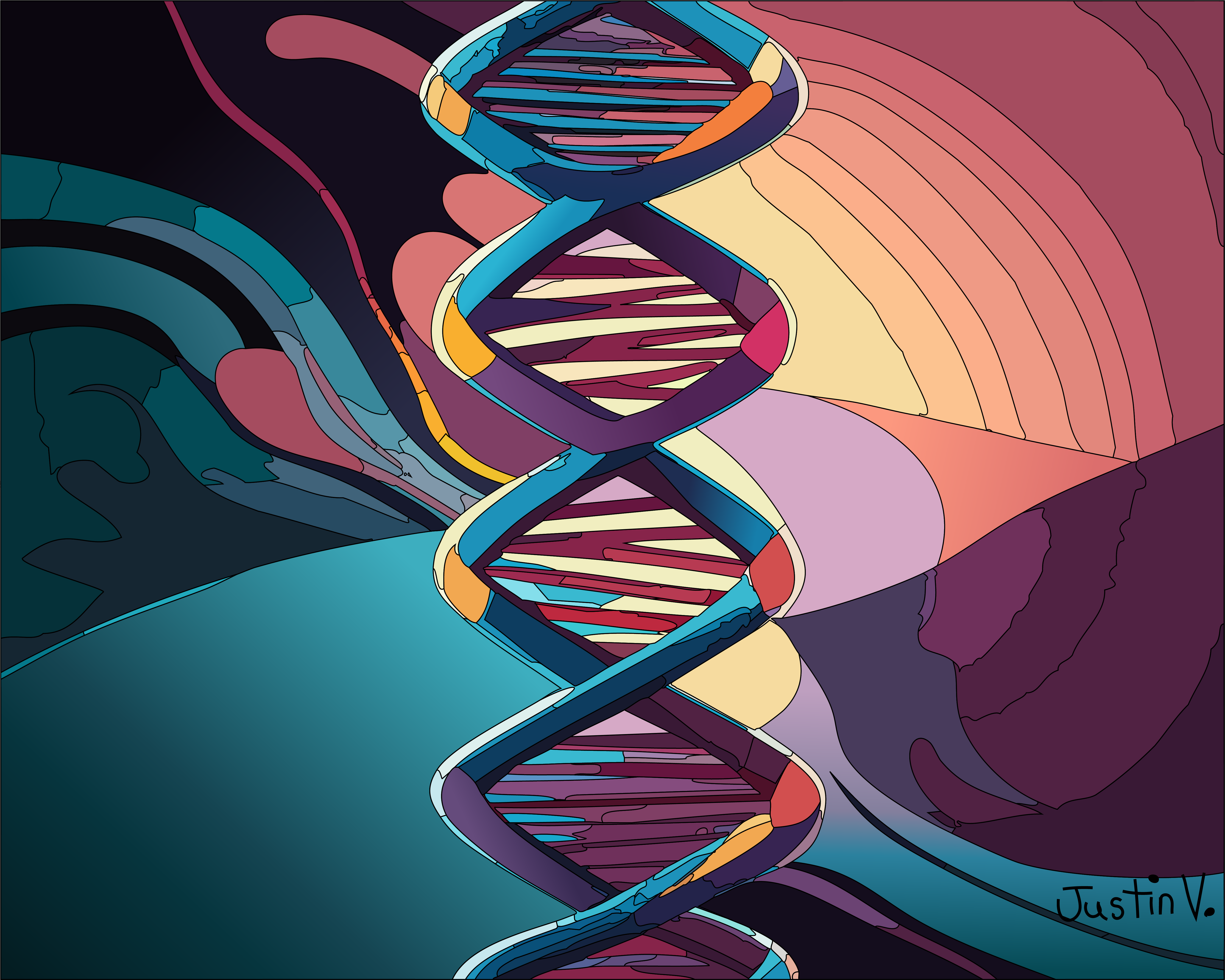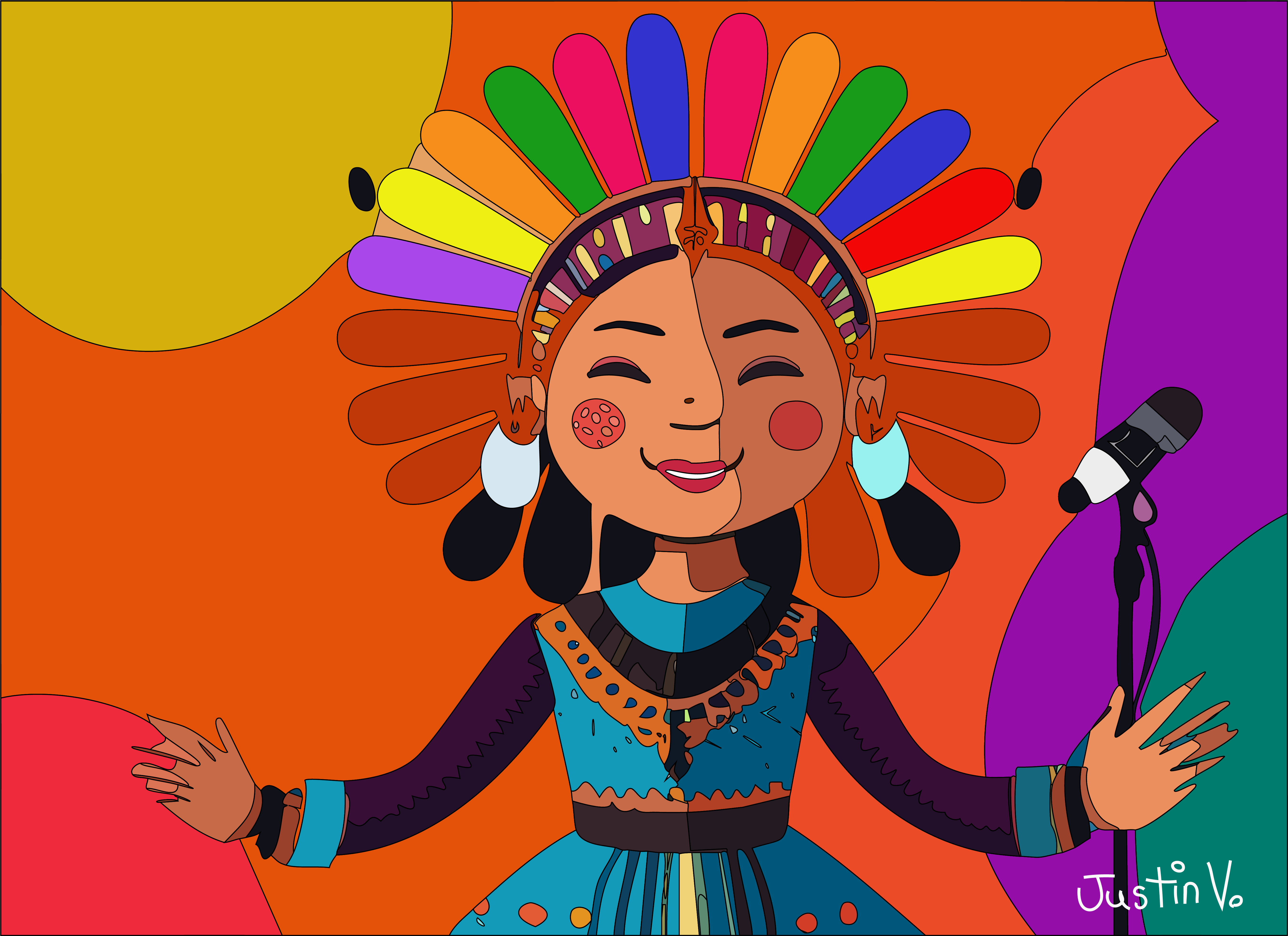 The background is a design that I created and this illustration was done using a triangular technique that I use for my portraits. It is inspired by one of my favorite musicians and it is 8 x 10 in a black 11×14 mat.