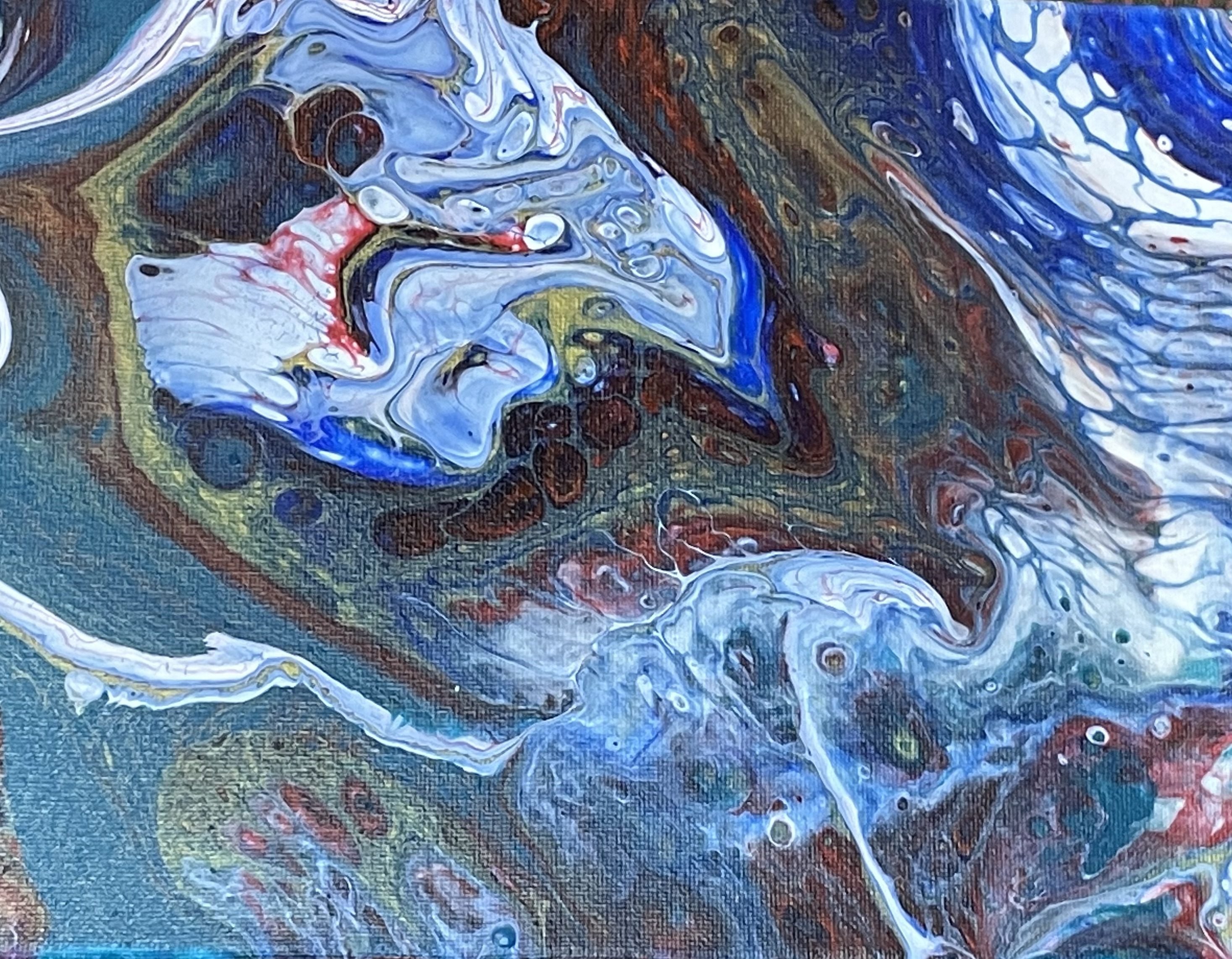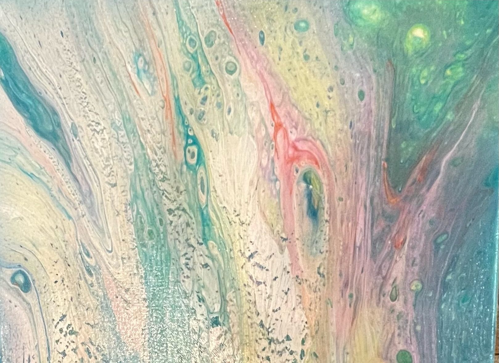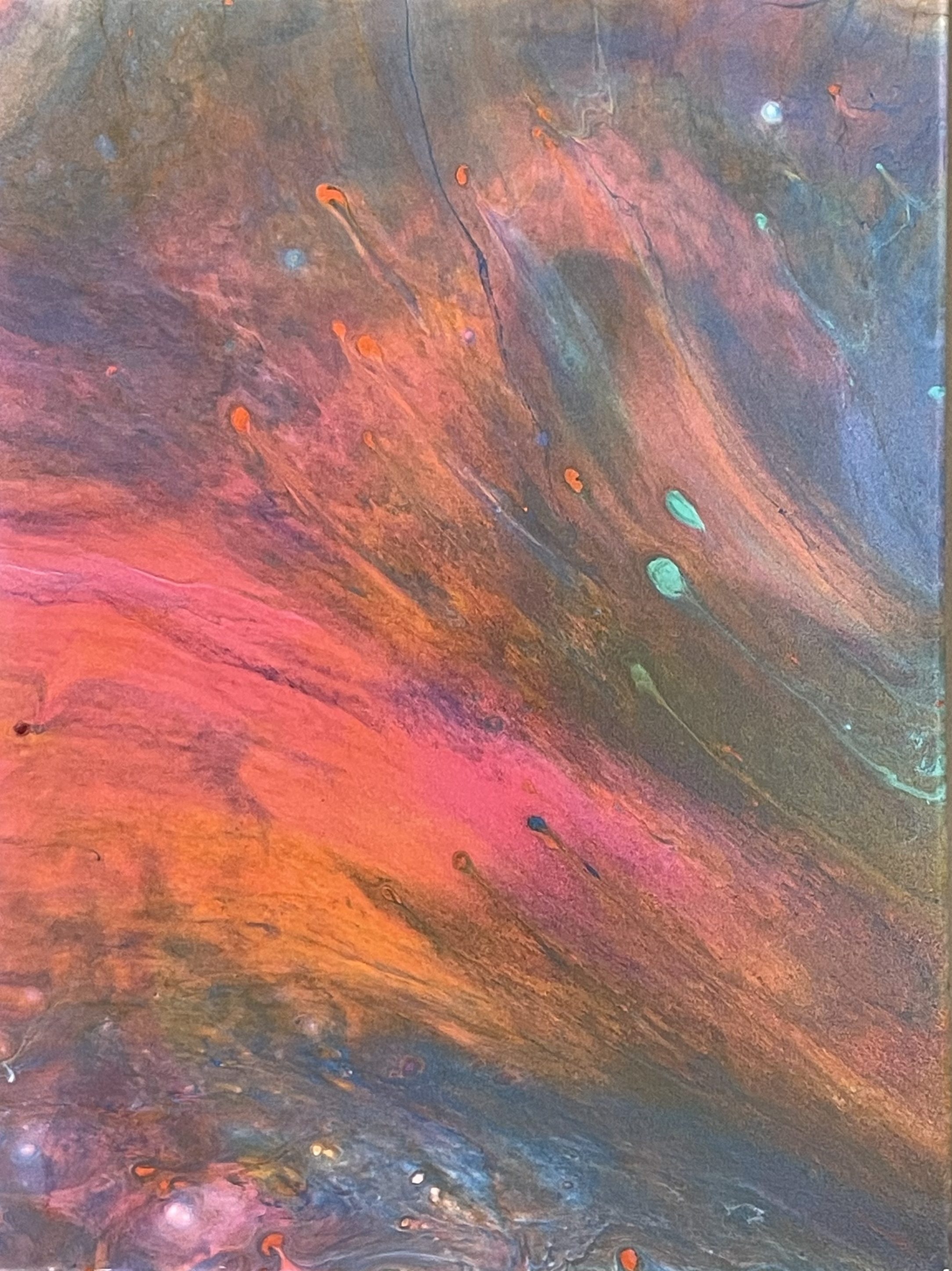 One-of-a-kind artwork, wrap around canvas, size is 11 inches by 14 inches. This painting has a black wood gallery frame.